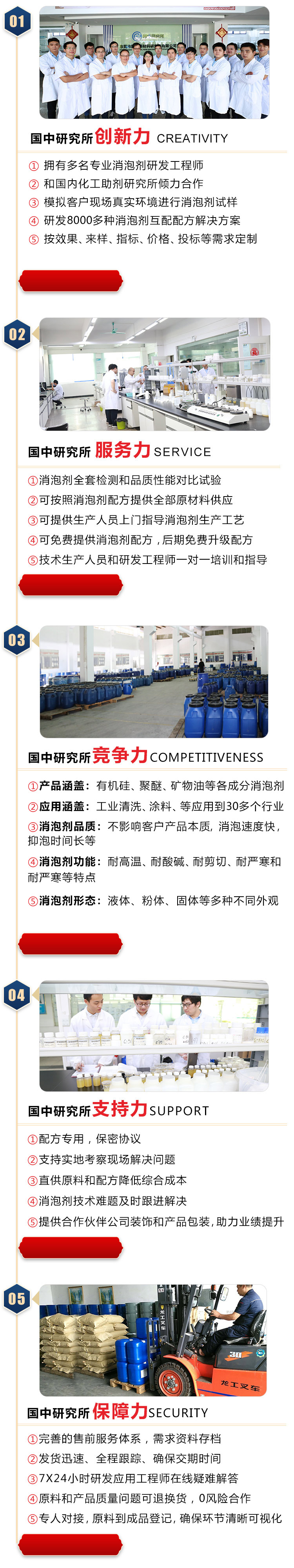 東莞市國(guó)中新材料研究所有限公司是一家集科研、生產(chǎn)、銷售、服務(wù)于一體的新材料研究所,擁有3000平方的研發(fā)基地,擁有一支專業(yè)消泡劑研究人員組成的研發(fā)團(tuán)隊(duì)。成立以來(lái)一直致力于消泡劑原材料、成品的開發(fā)以及客戶技術(shù)服務(wù),長(zhǎng)期與國(guó)內(nèi)研究所合作研發(fā)消泡劑配方。